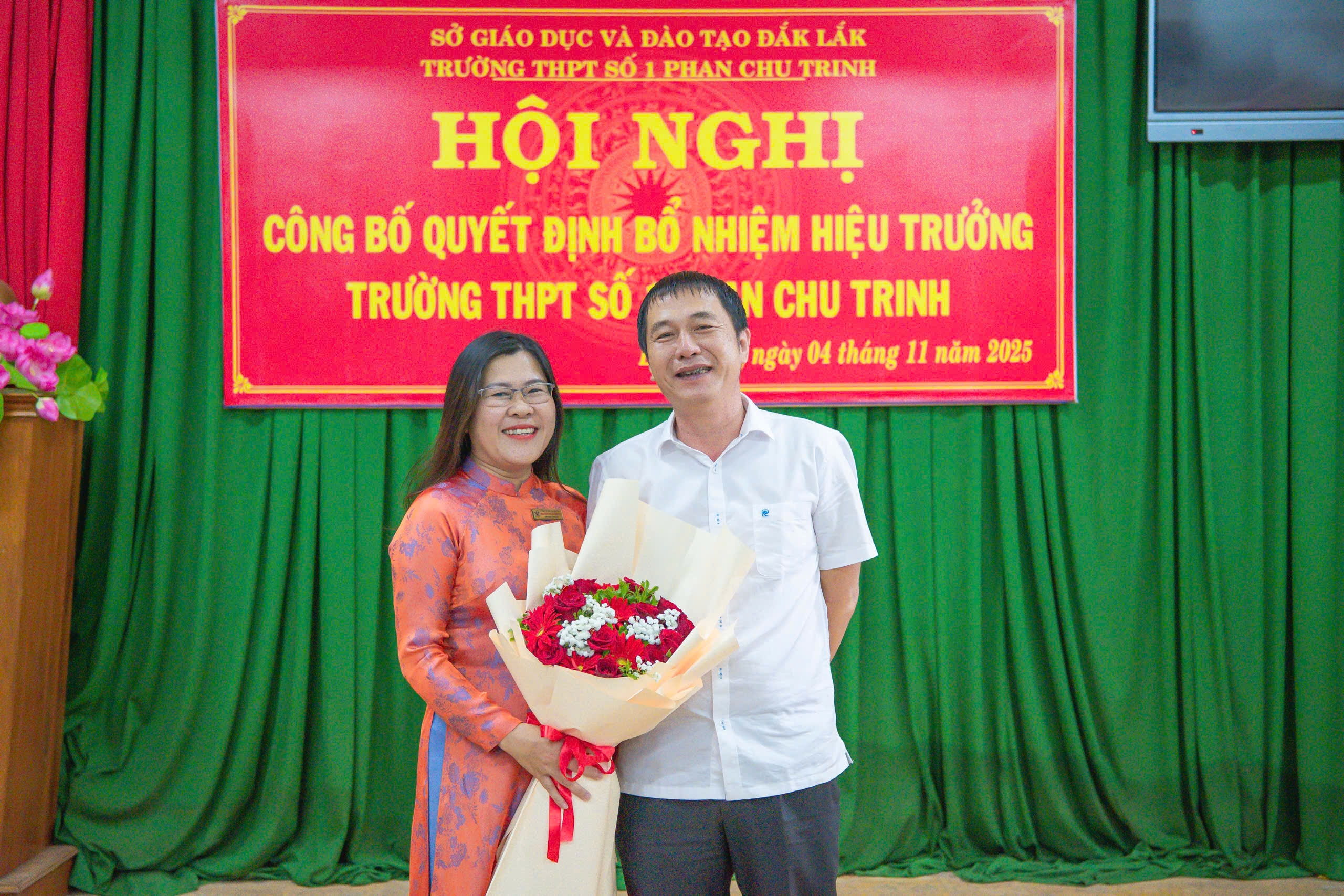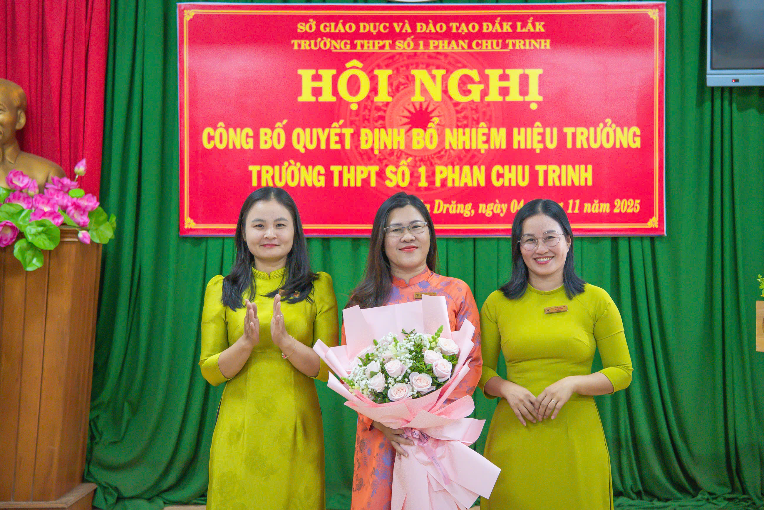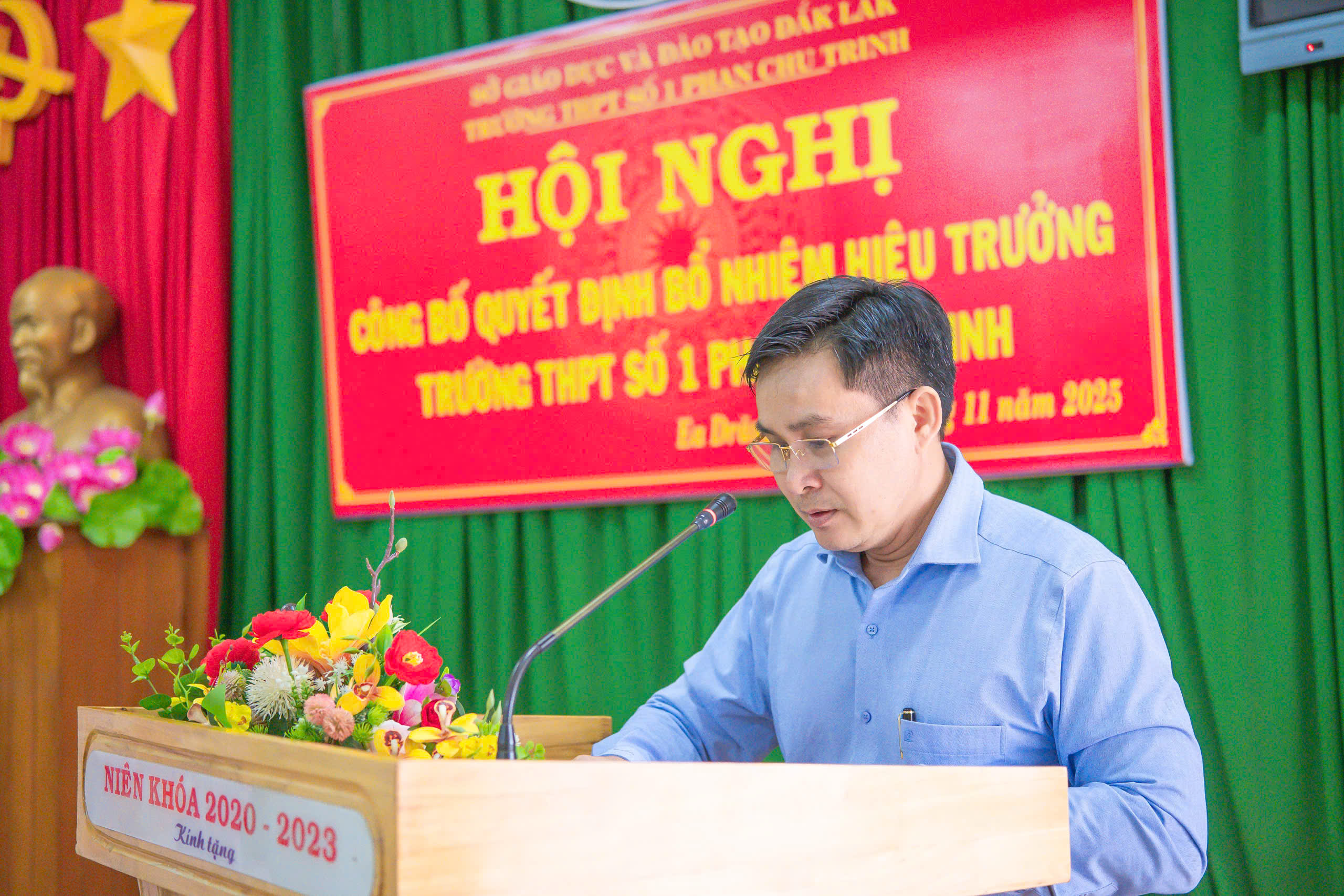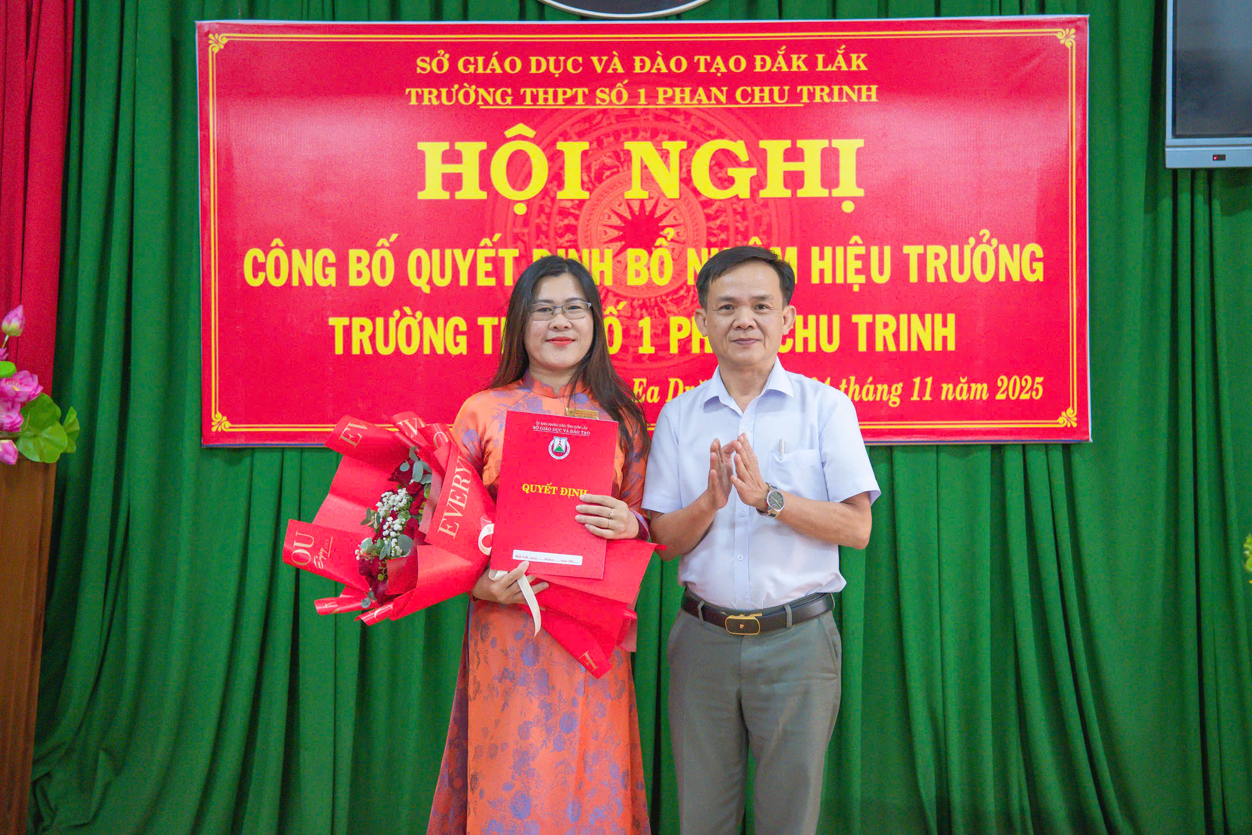 Chiều ngày 04/11/2025, trong không khí trang trọng và ấm áp, Trường THPT Số 1 Phan Chu Trinh long trọng tổ chức Hội nghị công bố Quyết định bổ nhiệm Hiệu trưởng do Sở Giáo dục và Đào tạo tỉnh Đắk Lắk công bố. Đây là dấu mốc quan trọng, thể hiện sự quan tâm, tin tưởng của ngành Giáo dục đối với đội ngũ cán bộ quản lý của nhà trường, đồng thời mở ra chặng đường mới đầy hứa hẹn cho tập thể sư phạm trường THPT Số 1 Phan Chu Trinh.