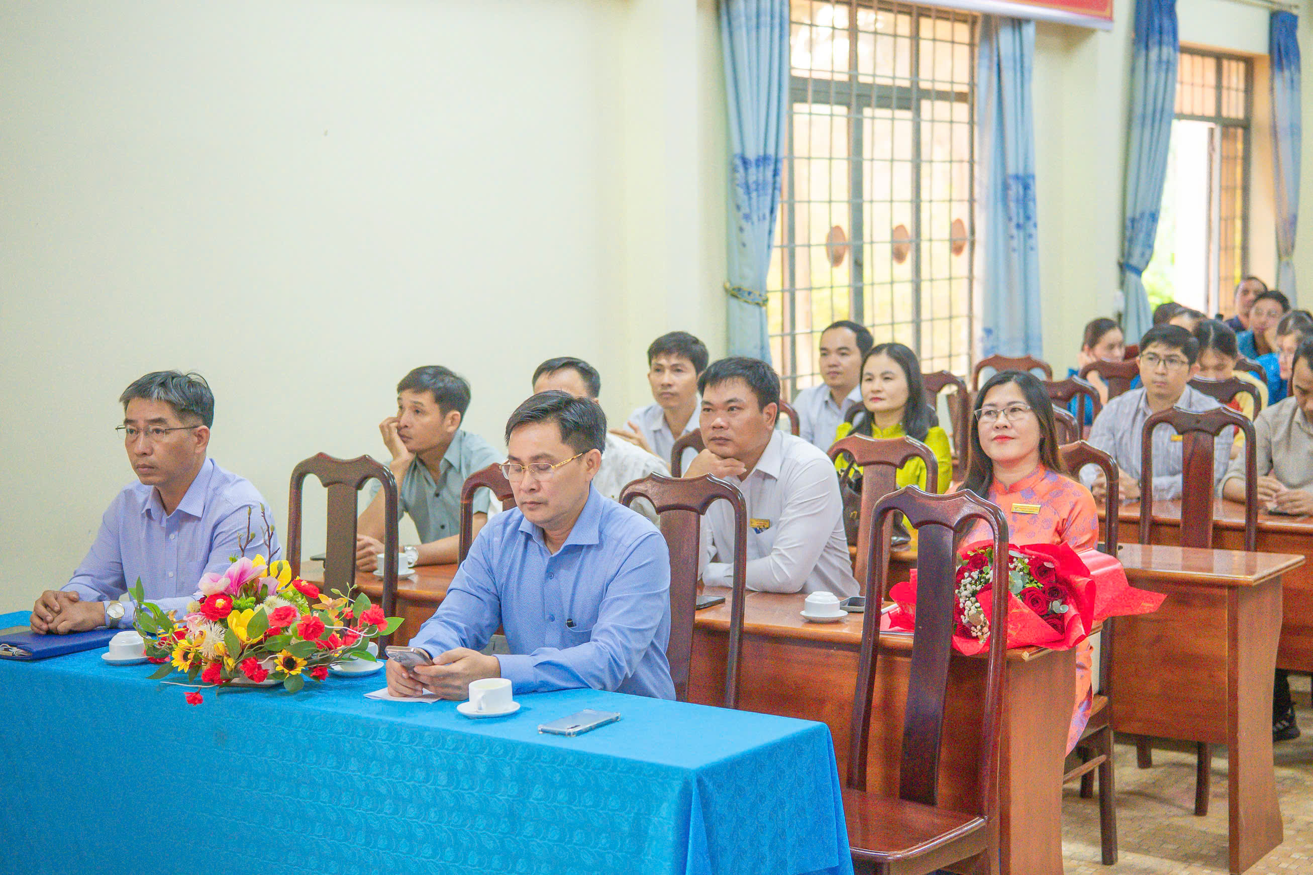Đại diện Sở Giáo dục và Đào tạo tỉnh Đắk Lắk, lãnh đạo địa phương chúc mừng Cô Nguyễn Thị Xuân Thu được bổ nhiệm giữ chức vụ Hiệu Trưởng.