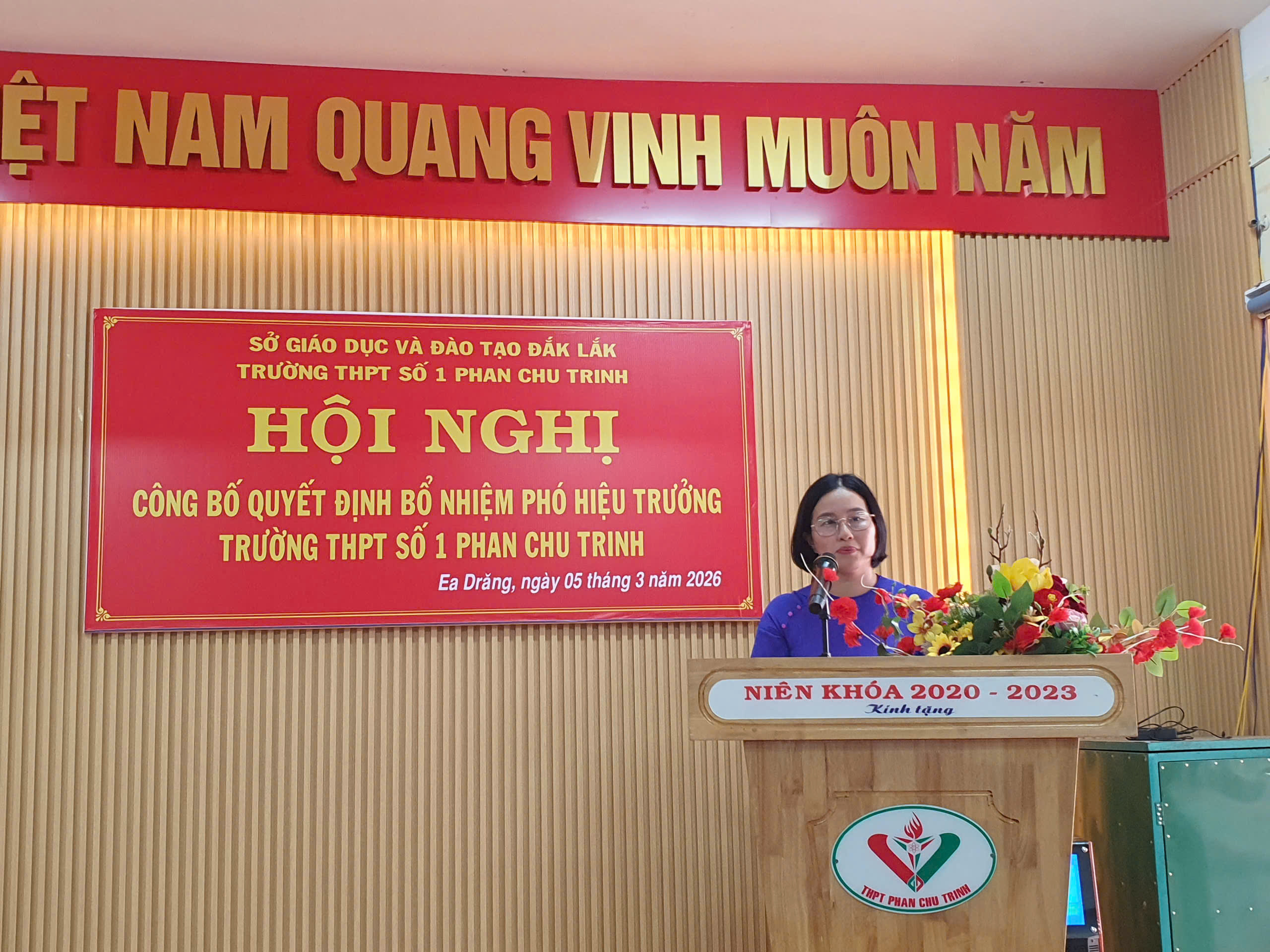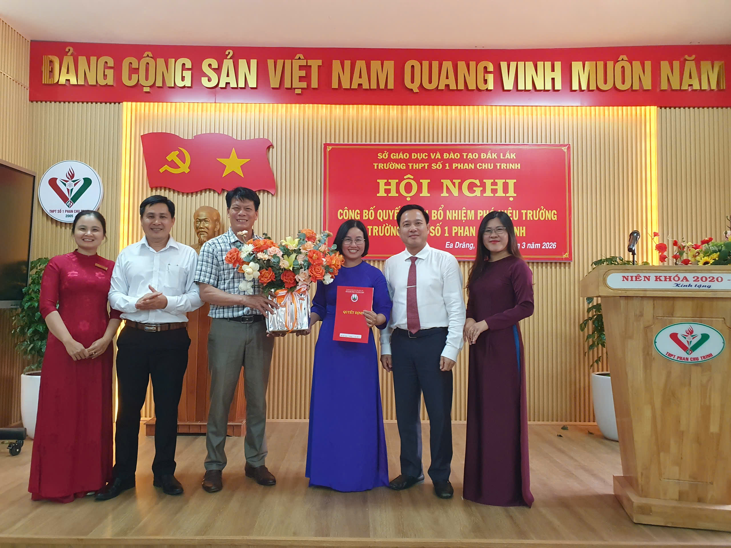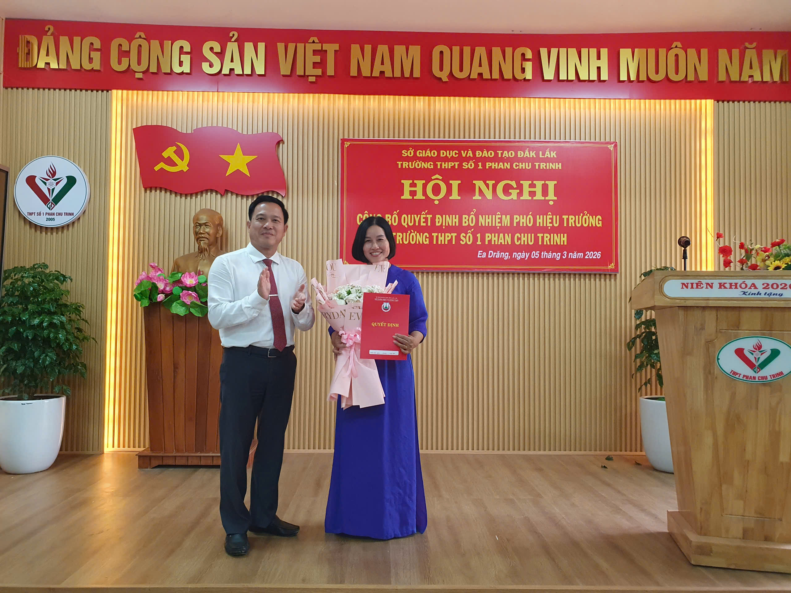 Trong không khí phấn khởi của những ngày đầu tháng 3, ngày 05/03/2026, trường THPT Số 1 Phan Chu Trinh đã long trọng tổ chức Hội nghị công bố quyết định của Sở Giáo dục và Đào tạo Đắk Lắk về việc bổ nhiệm Phó Hiệu trưởng nhà trường.