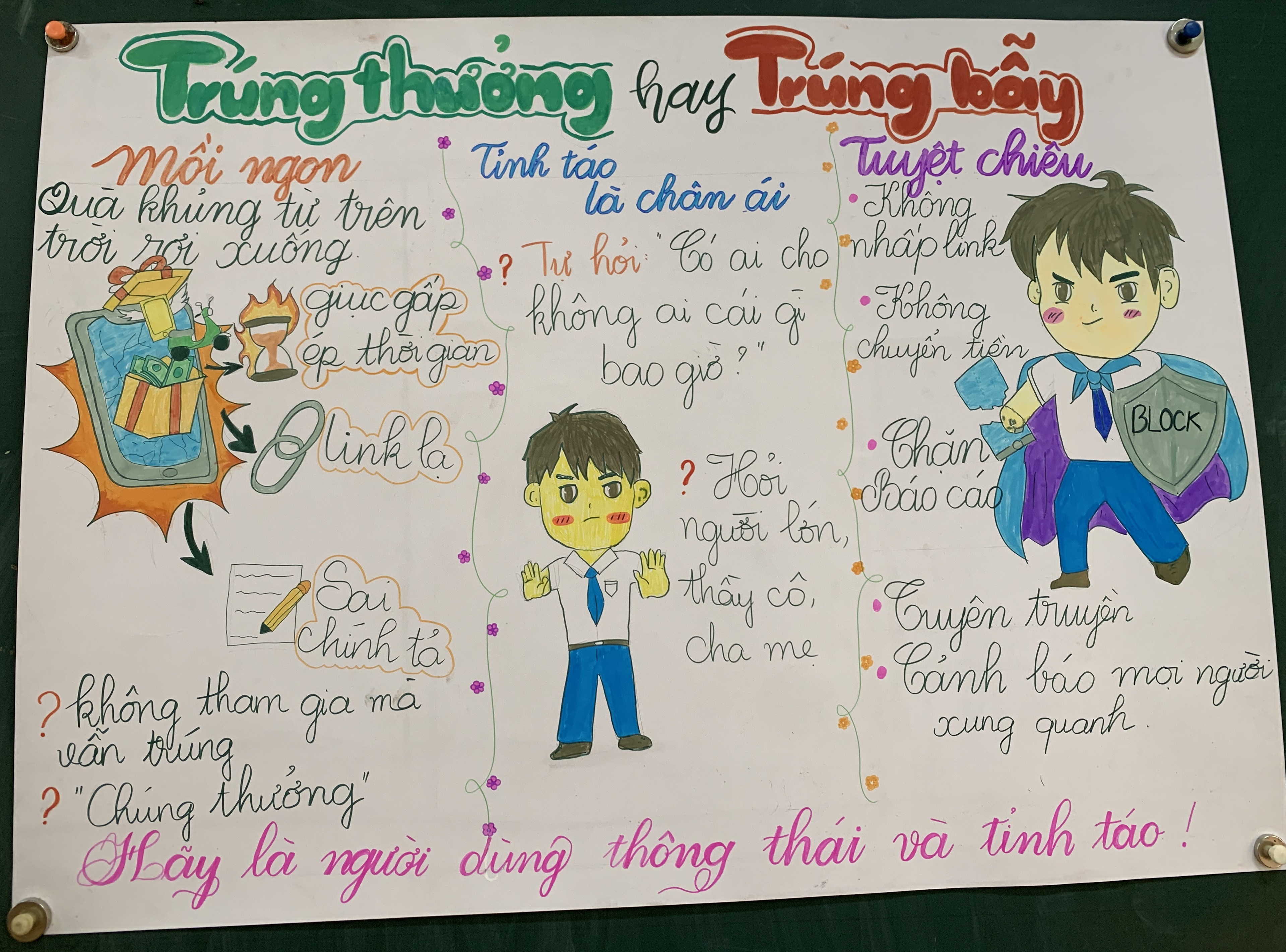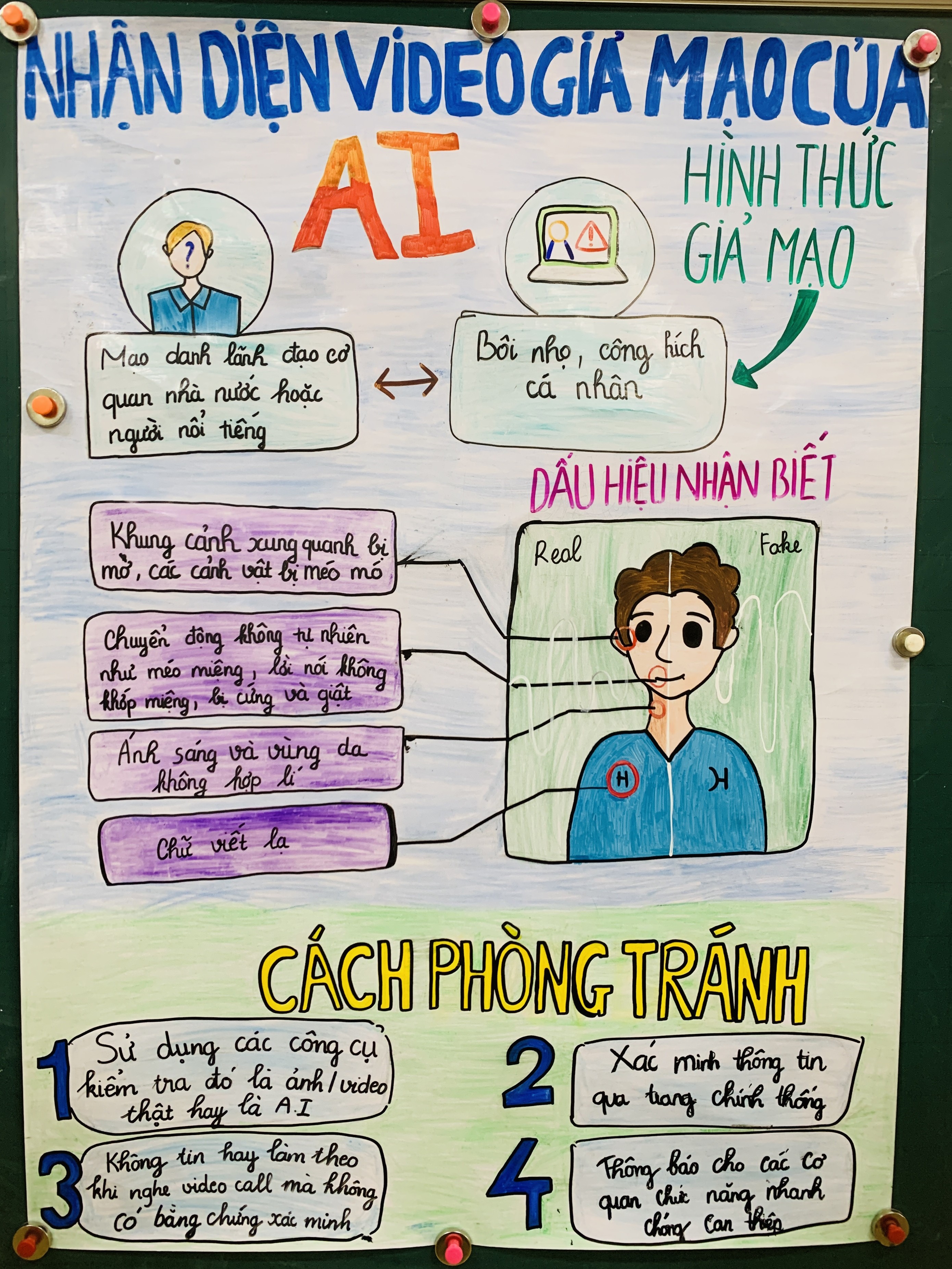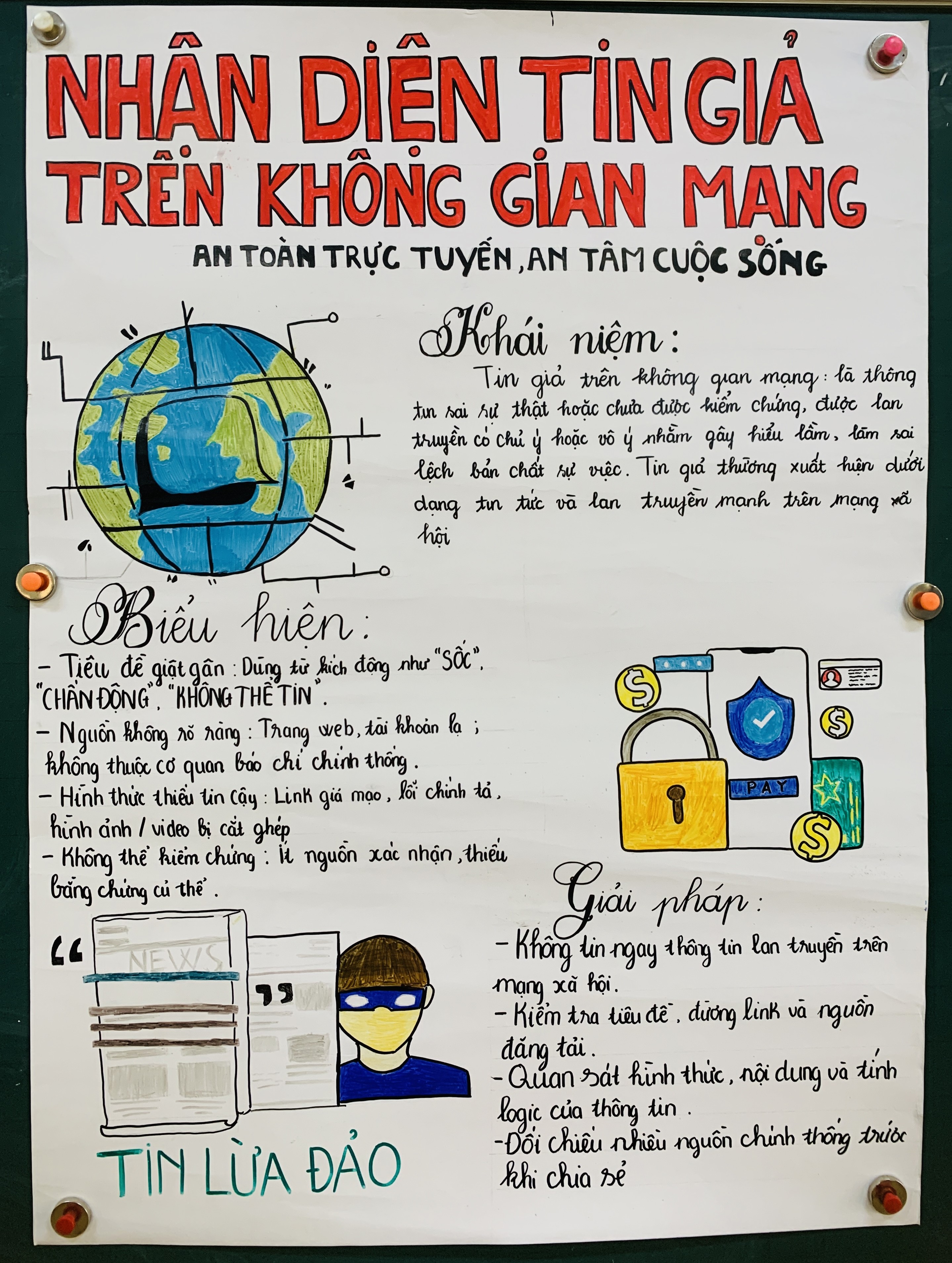 Dưới đây là một số POSTER và Video truyền thông Nâng cao năng lực “an toàn thông tin” trên không gian mạng cho học sinh do các bạn học sinh khối 12 thực hiện trong quá trình học tập chủ đề: “Đạo đức, pháp luật và ứng xử văn minh trên không gian mạng” giúp cho các bạn học sinh hiểu biết hơn các nguy cơ khi tham gia môi trường số, ứng xử an toàn, có trách nhiệm, bảo vệ bản và cộng đồng.