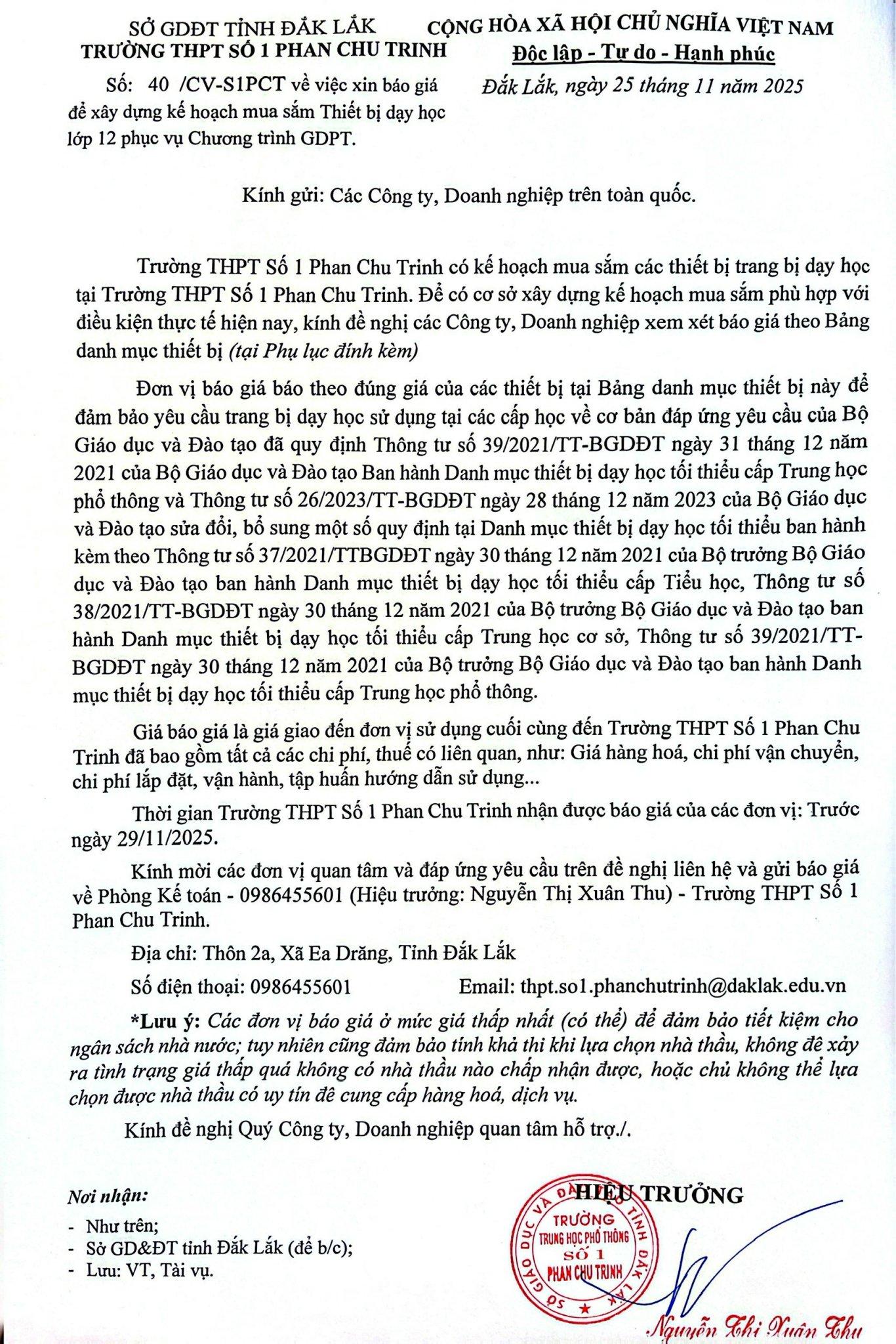 Trường THPT Số 1 Phan Chu Trinh 26/11/2025 Lượt xem: 13